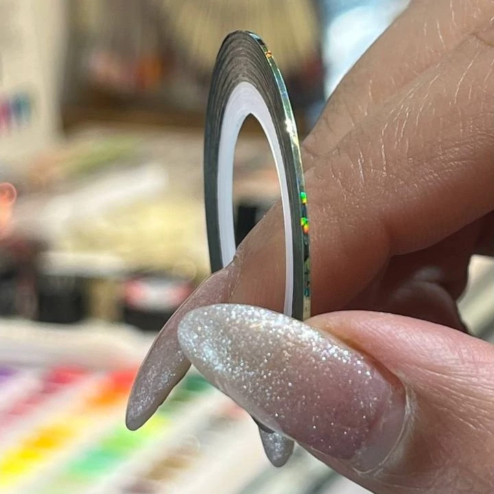 نوار دیزاین ناخن (Nail Striping Tape) یک نوع نوار نازک و بلند است که برای ایجاد خطوط دقیق و طراحیهای هندسی روی ناخن استفاده میشود. معمولاً از فلز نازک، پلاستیک یا فویل ساخته میشود. به شکل رول یا شاخهای عرضه میشود تا بتوان به اندازه دلخواه برش داد. نام «Striping Tape» به دلیل قابلیت کشیدن خطوط صاف و بلند روی ناخن گرفته شده است کاربرد نوار دیزاین ناخن ایجاد خطوط صاف و هندسی طراحی چند رنگی و ترکیبی روی ناخن تقسیم ناخن به بخشهای مختلف با طرحهای متفاوت ترکیب با لاک ژل، اسپایدر ژل، فویل و نگین برای طراحی حرفهای